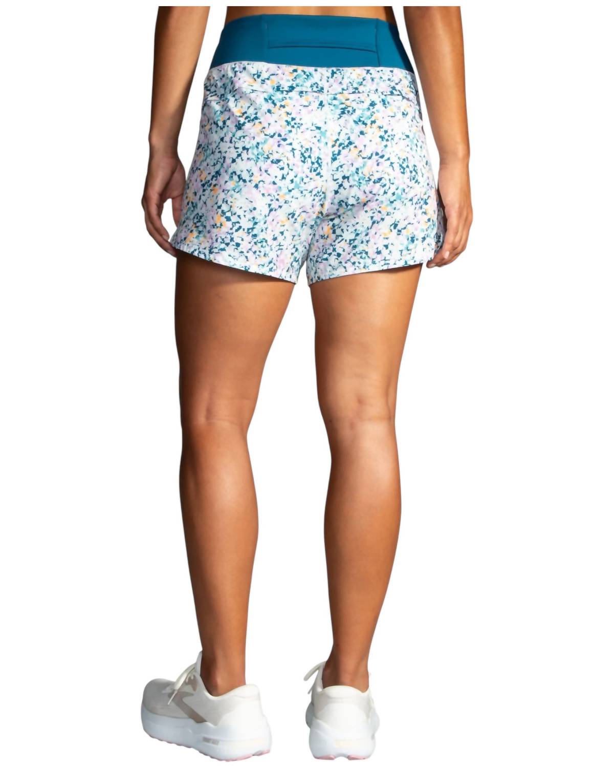 Stylish and comfortable, these athletic shorts will never go out of style. Experience the stylish and eco-friendly Women's Chaser Shorts by BROOKS, crafted in a vibrant Speedwork floral pattern. Made with recycled polyester fabric equivalent to roughly five post-consumer plastic water bottles, these athletic shorts feature an inseam of 5 inches. The lightweight, 4-way stretch shell provides excellent ventilation with back vents, while the pull-on closure ensures a comfortable fit. Care instructions include machine wash and tumble dry for easy maintenance.