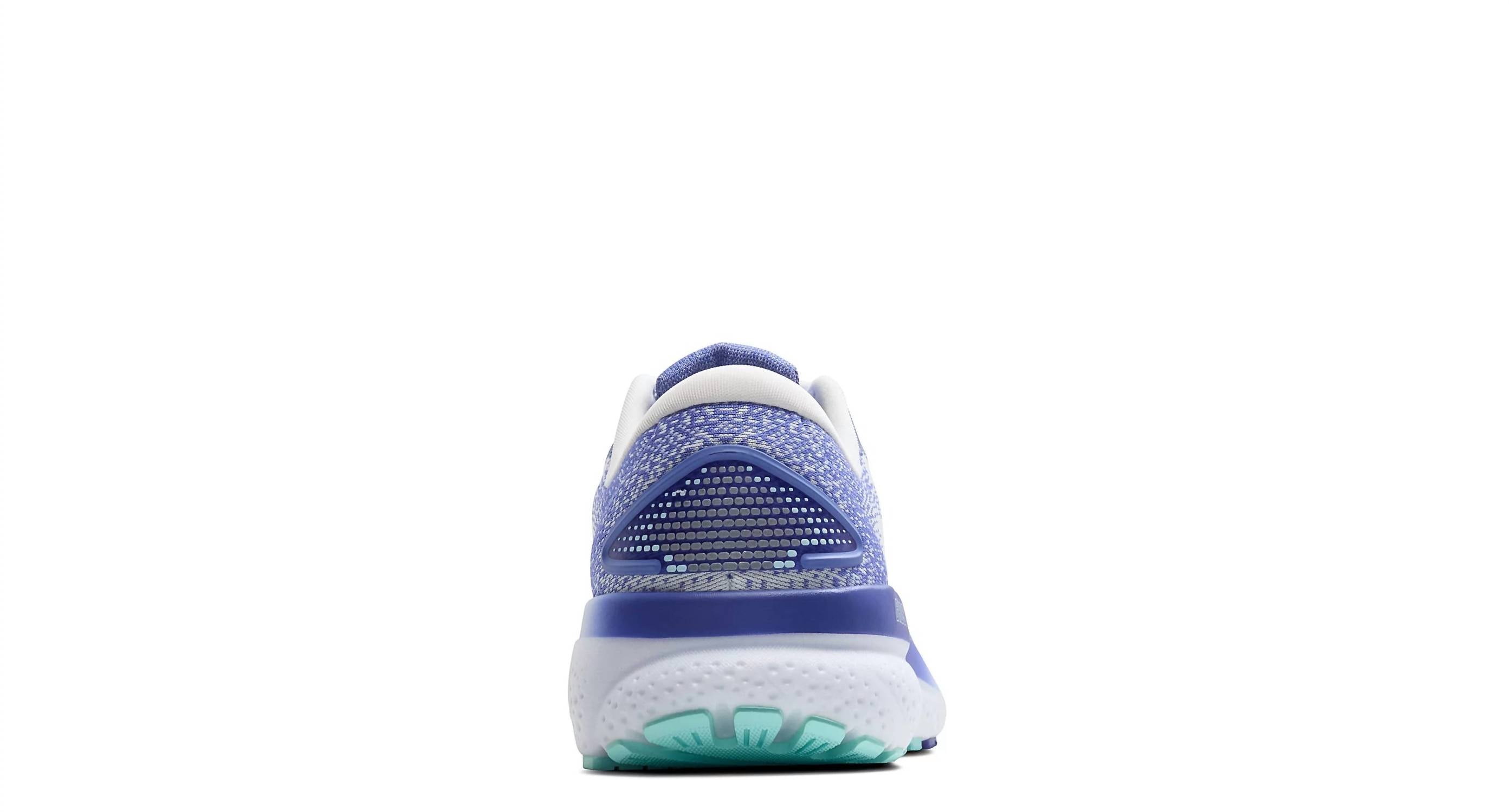 Stylish, comfortable and supportive. These athletic sneakers check all of the boxes. Experience the comfort and efficiency of the Women's Ghost 16 Road Running Shoes by BROOKS, designed for the demanding road runner. With a contemporary white, Amparo Blue, and Limpet Shell color palette, these athletic shoes feature a round toe and enhanced upper for a secure fit, complemented by soft cushioning and smooth transitions for ultimate comfort. Perfect for fitness and workout enthusiasts who prioritize both style and sustainability, as the shoes incorporate 67.3% recycled materials and have a low heel height of 1 1/4"-2". Ideal for road running or as part of your athleisure wardrobe, these shoes epitomize sustainable innovation.