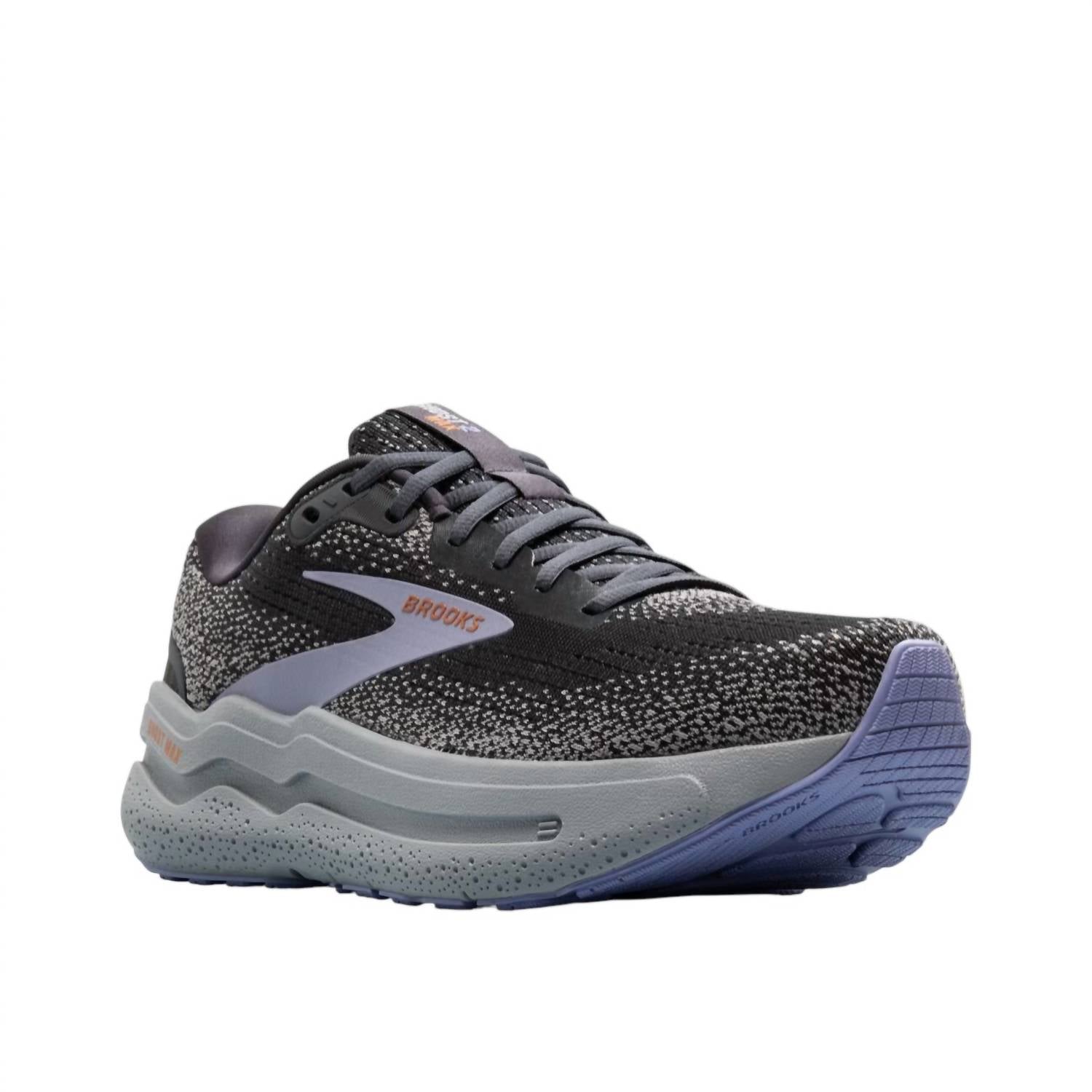 Cute, functional, and comfortable. These sneakers check all the boxes. Experience the ultimate in comfort and functionality with the BROOKS Women's Ghost Max 2 Road Running Sneakers in an eye-catching Ebony/Sweet Lavender/Alloy color scheme. These sneakers feature a plush build with a balanced feel, bolstered by a 6mm midsole drop, ensuring easy and stable transitions for road running or walking. With a low platform heel and round toe, the design is optimal for summer fitness and workout activities, embodying the trendy Y2k aesthetic. Emphasizing sustainability, the upper is crafted from 54.9% recycled materials, offering a soft yet protective fit while remaining certified CarbonNeutral®. The shoe weighs 9.7oz (275g) each, providing lightweight cushioning that effortlessly assists every step.
