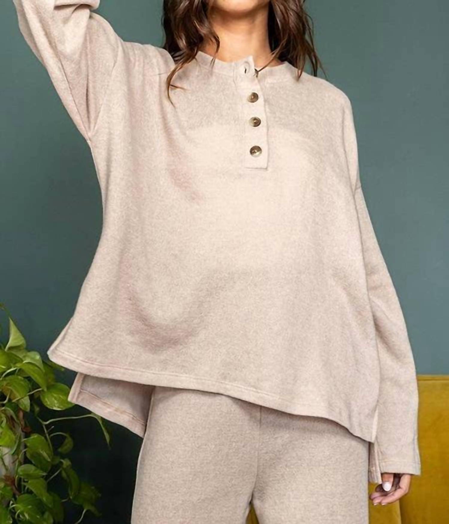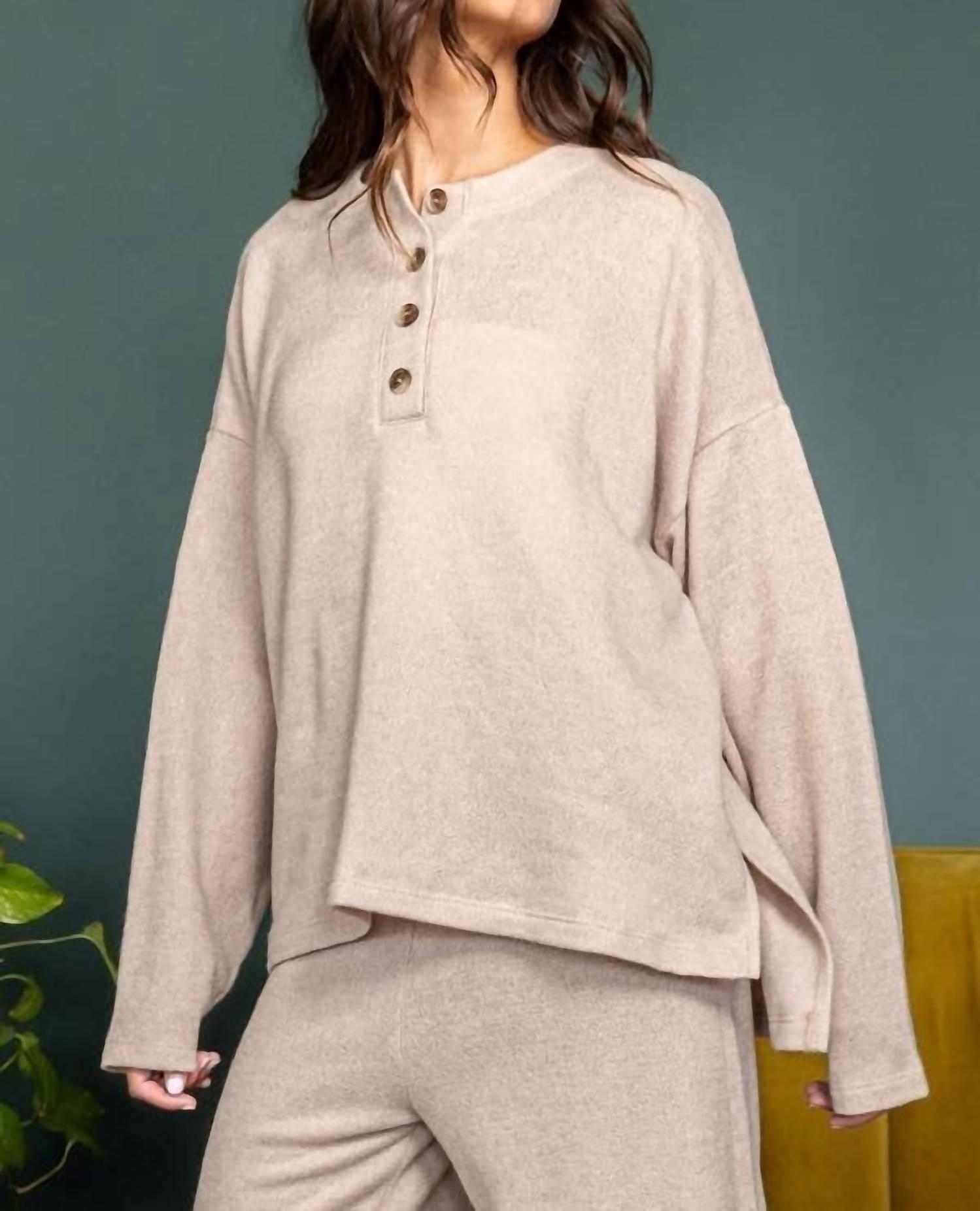 Bucketlist - Solid Blushed Knit Oversize Henley Top