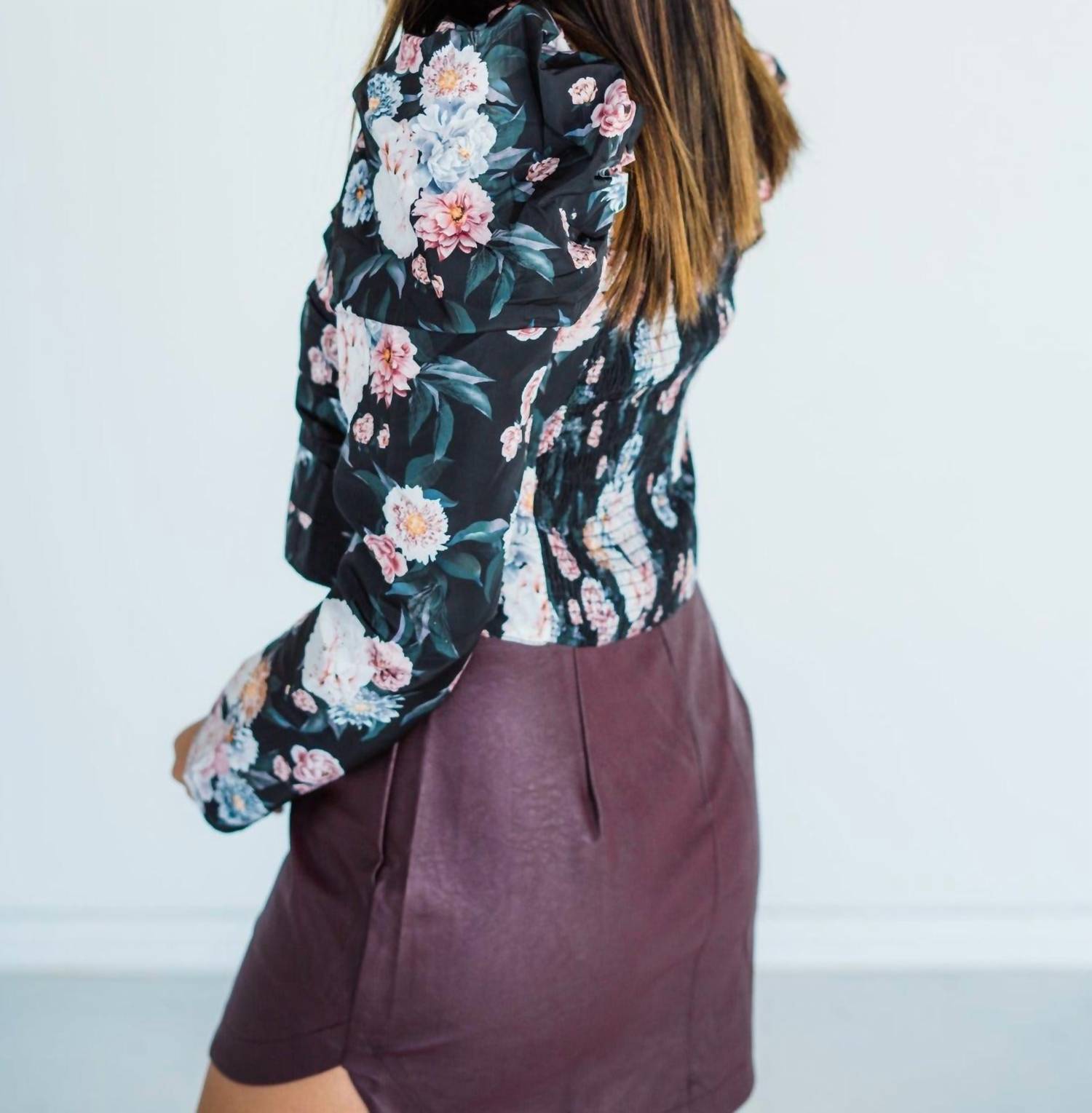 Buddy loves dutchess pleated long-sleeve tops - sleeping garden. Floral print. Relaxed puff long sleeve. Square neckline. Cropped length to the natural waist line. Smocked bodice. 100% polyester. Fit is true to size with no stretch. Jimena is wearing the small. She is a size 5 and wears a small in tops or dresses and a medium in bottoms or rompers.