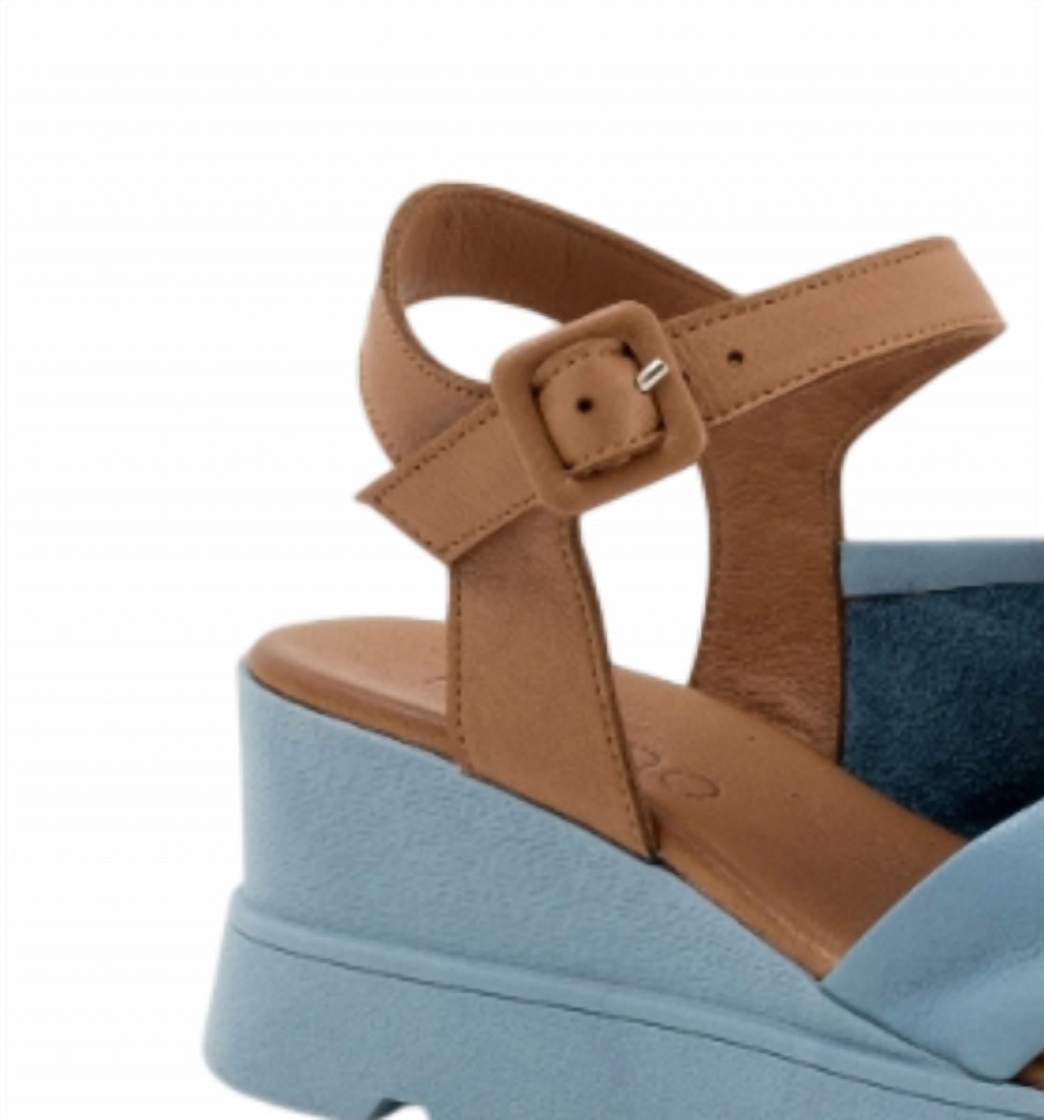 This sandal will take you from brunch to dinner and everything in between. Step into style with Bueno's Women's Gwyneth Sandals, the perfect blend of fashion and comfort in a chic denim hue. Designed with leather throughout, these sandals feature a high 4.5" wedge heel and a 0.5" platform for a trendy Boho Chic vibe. The adjustable ankle strap ensures a customizable fit, while the lightly cushioned insole and flexible sole provide all-day comfort. Perfect for summer outings, these open-toe sandals make an elegant choice for both casual and holiday party occasions.