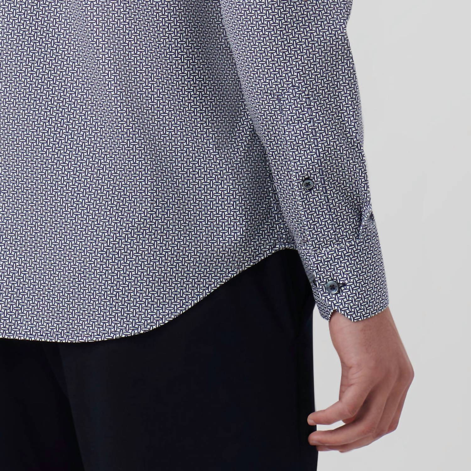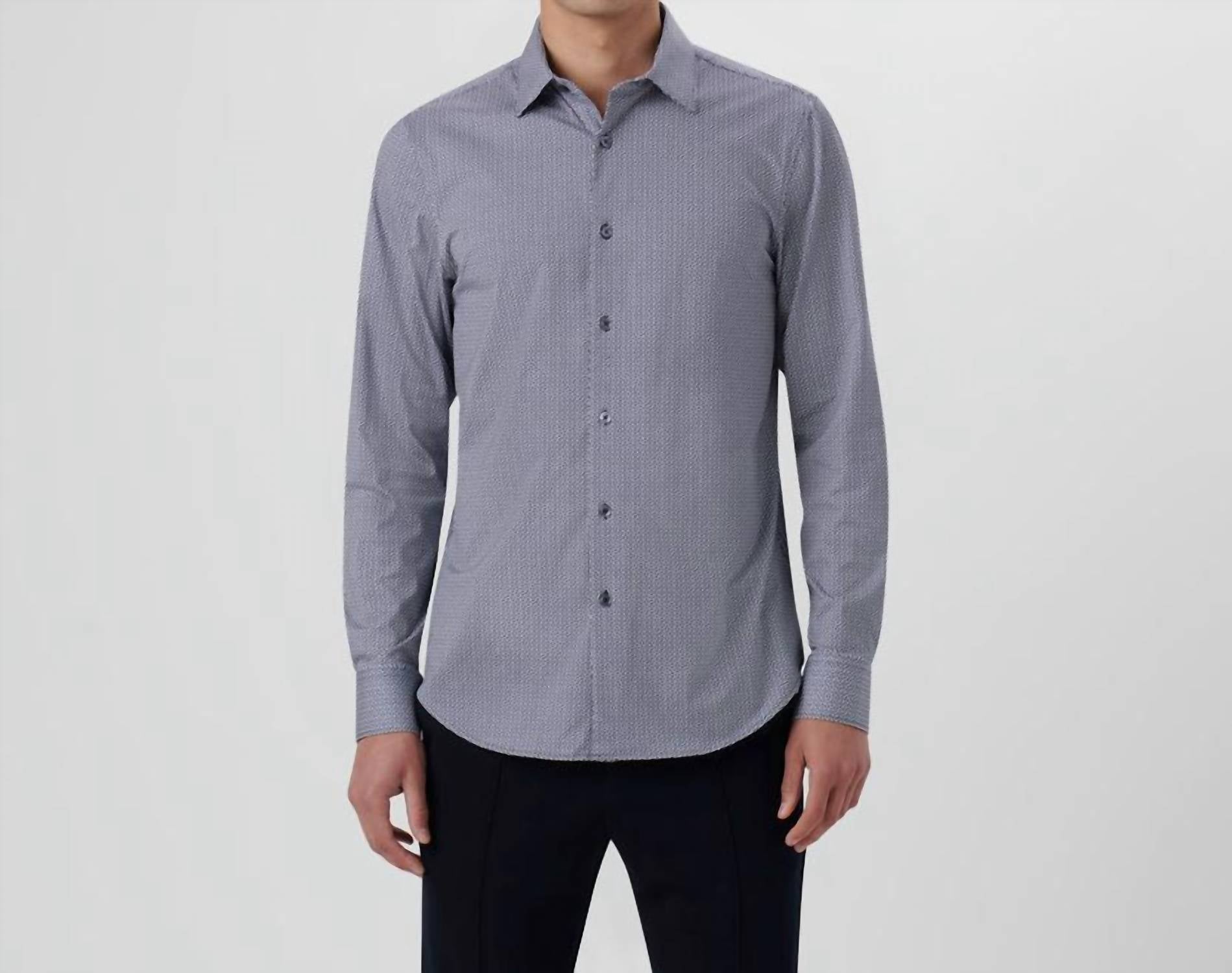 This patterned shirt features long sleeves and a point collar for an elevated casual look. Made from a premium cotton blend with 92% cotton and 8% spandex, it offers 8-way stretch and high breathability. Enjoy the convenience of a full button closure and easy care, as this shirt is designed to be wrinkle-resistant, quick-drying, and machine washable. Imported and modeled in size M, the shirt caters to a 6'2" height for a perfect fit.