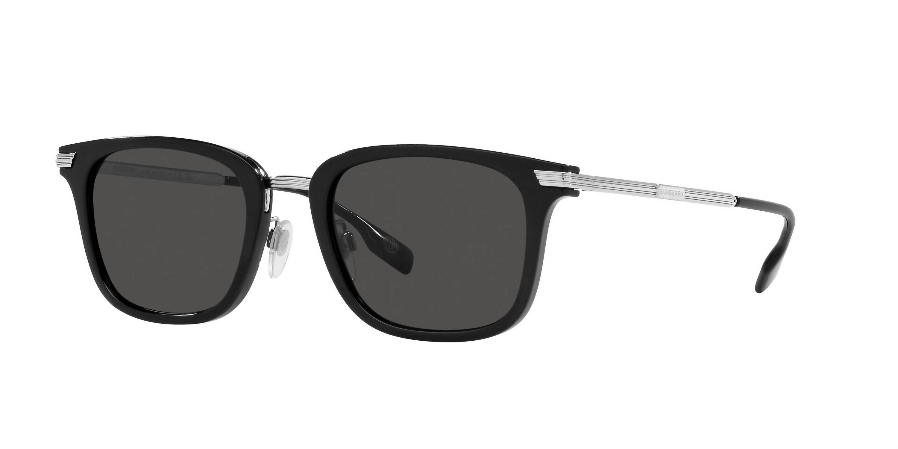 Make a statement and shield your eyes in these fashionable, yet practical sunglasses. Grab these adorable shades for your next vacation and elevate your accessory game. Discover the Burberry Square Non Polarized Sunglasses - Be4395 3001 - 87, a sophisticated choice for any unisex fashion lover. Crafted in Italy, these sunglasses boast a stylish square shape and are made from a combination of materials. Featuring a striking black and silver front with matching temple colors, they come equipped with grey lenses that provide a sleek finish. Dimensions include a lens size of 51 mm, a nose bridge length of 21 mm, and a temple length of 145 mm, ensuring a comfortable fit.