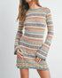 Experience the vibrant style of the Buttermelon Multicolored Sweater Mini Dress, a Y2K-inspired piece for the modern wardrobe. This women's dress features long sleeves and is crafted from soft cotton, offering a bodycon silhouette with a stripe pattern in a striking taupe multi-color. Designed for versatility, it has a crewneck and a mini length, making it perfect for springtime, especially for special occasions like anniversaries or Valentine's Day. With a convenient pull-on closure, this dress is machine washable and can be tumble dried for easy care.