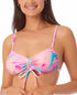Go for retro-inspired drama at the shore in a strappy cinchable bikini top from California Waves| styled with an abstract 80s print.| Removable cups| Adjustable shoulder straps; self-tying straps at mid-back| Cinchable bandeau neckline with drawstrings at center front| Lined|