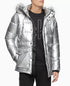 Calvin Klein Men's Metallic Puffer Parka With Faux Fur Trim Silver Size Medium