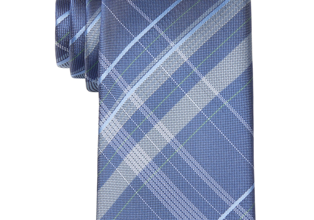 A sleek grid of interweaving lines spans the length of this woven tie from Calvin Klein| designed with a slim blade that elongates the chest and puts an elegant focus on the torso