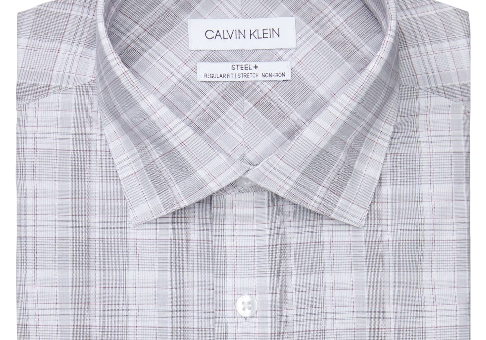 Calvin Klein Mens Dress Shirts Non Iron Stretch Regular Fit Check 15 Neck 32-33 Sleeve Plum Multi