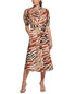 Add a timeless silhouette to your wardrobe with this midi shirtdress from Calvin Klein| Puff sleeves and bold animal print help update this classic style|