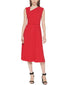 A flattering style from Calvin Klein. This polished A-line dress is updated with an asymmetrical v-neck and a belted waist for added definition.| Approx. 45 long from center back neck to hem. Length is based on size 6| Runs True to Size| order normal size| Fitted through the chest and waist; structured A-line skirt sits slightly over hips| Scuba crepe; Stretchy and supportive| Asymmetrical v-neck; A-line silhouette
