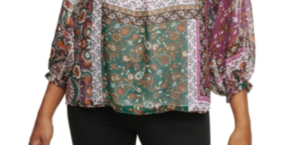 Calvin Klein Women's Clip Dot Ruffle Neck Pullover Blouse Floral Print Size X-Large