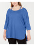Calvin Klein Women's Cold Shoulder 3/4 Sleeve Jewel Neck Hi Lo Top Blue Size 3X