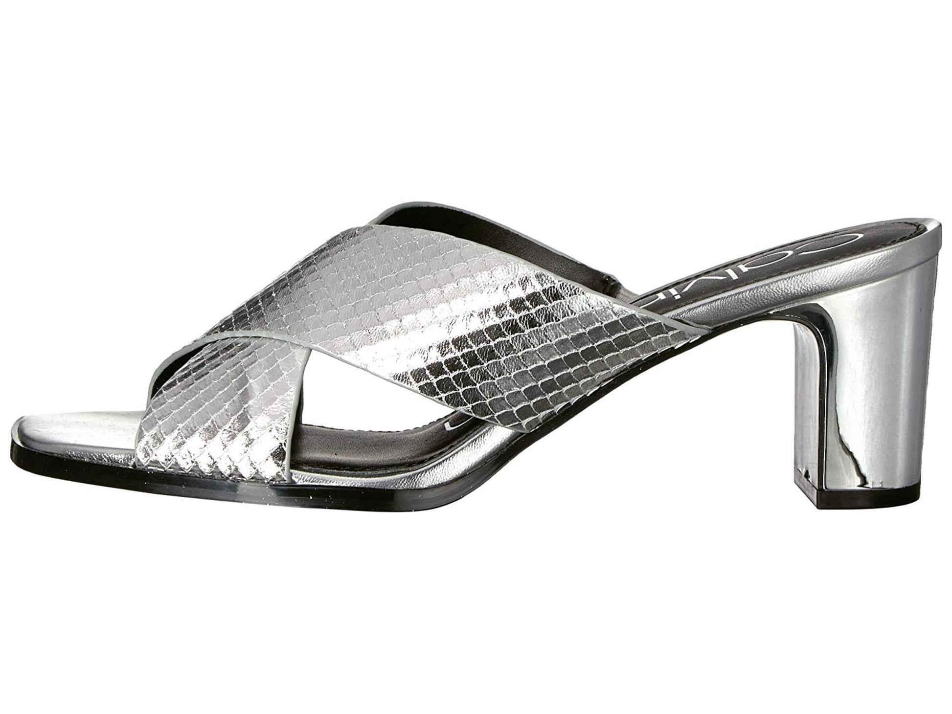 Ask a question about Calvin Klein Women's Dylan Heeled Sandal Silver Size 5.5 M