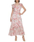 Calvin Klein Women's Floral Print Smocked Waist Tiered Maxi Dress Pink Size 16