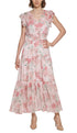 Completed with a tiered skirt and ruffled sleeves| this floral-print maxi dress from Calvin Klein boasts elegance and grace with every step.| Runs true to size; order your normal size| Ankle-length or longer casual dress| Smooth| sheer woven fabric| V-neck