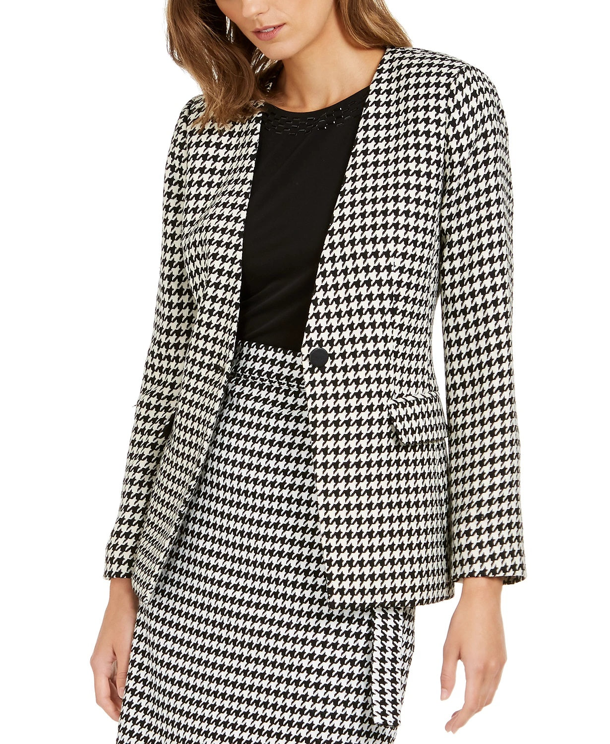 Approx. length: 26"|Collarless; front button closure|Flap pockets at front|Lined|Polyester/rayon/spandex; lining: polyester|Dry clean