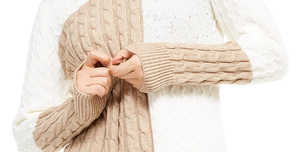 Cowlneck|Colorblocked; mixed stitch|Cotton/acrylic/nylon|Hand wash|Imported