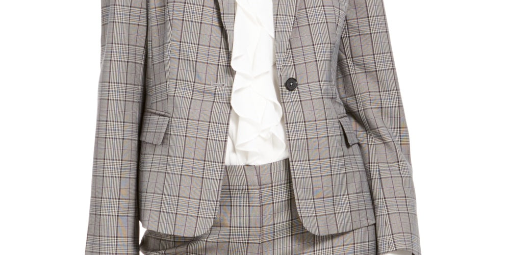 Calvin Klein Women's Plaid One-Button Blazer Blue Size 16