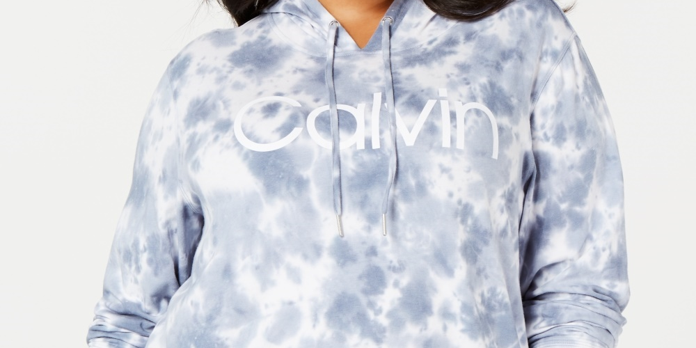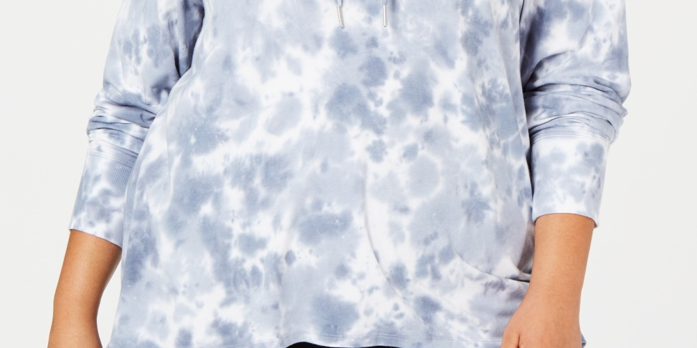 Calvin Klein Women's Plus Size Sunburst Tie Dyed Logo Hoodie Top Blue Size 2X