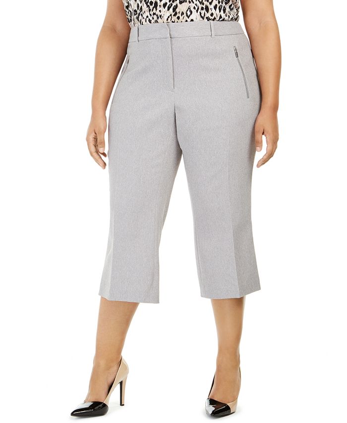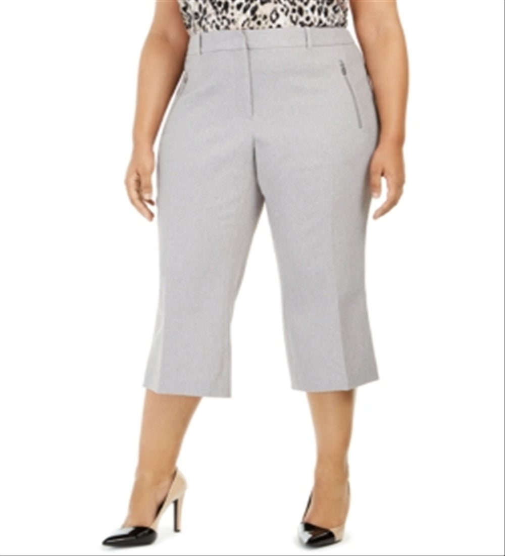 Calvin Klein Women's Plus Zipper Pocket Cropped Twill Pants Gray Size 24W