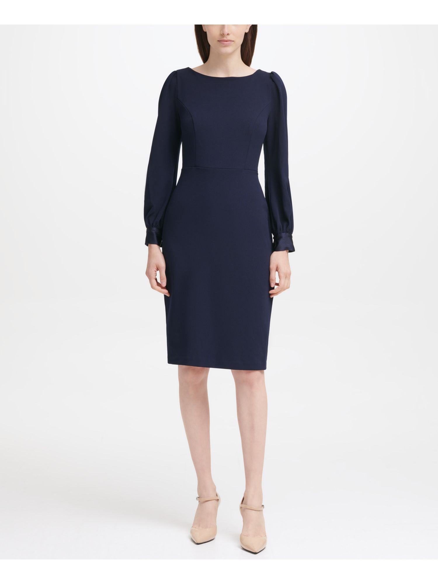 Calvin Klein Women's Puff Shoulder Sheath Dress Blue Size 12