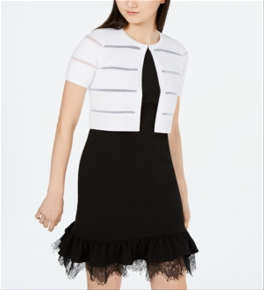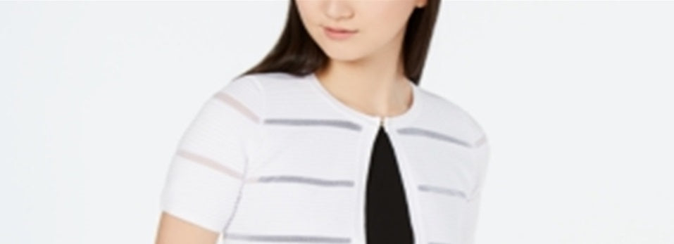 Calvin Klein Womens Ribbed Short Sleeve Open Cardigan Casual Sweater