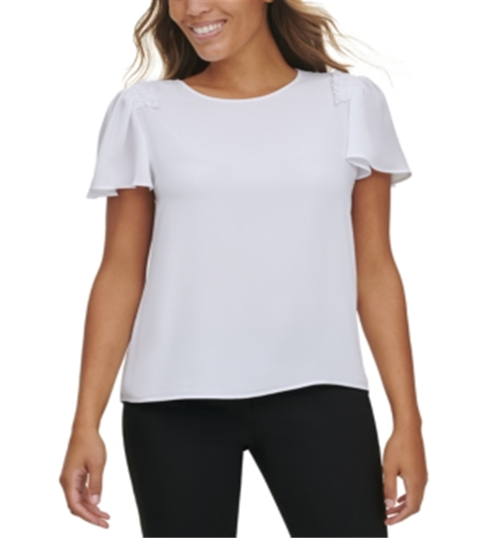 Calvin Klein Women's Ruffled Short Sleeve Blouse White Size X-Large