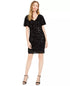 Approx. 35-3/4" long from center back neck to hem. Length is based on size 4 and varies 1/4" between sizes|V-neck; Sheath silhouette|Hidden back zipper with hook-and-eye closure|Short flutter sleeves|Allover sequined embossed velvet|IMPORTANT NOTE: This item arrives with a return tag attached and instructions for removal. Once the tag is removed from the dress, this item cannot be returned.