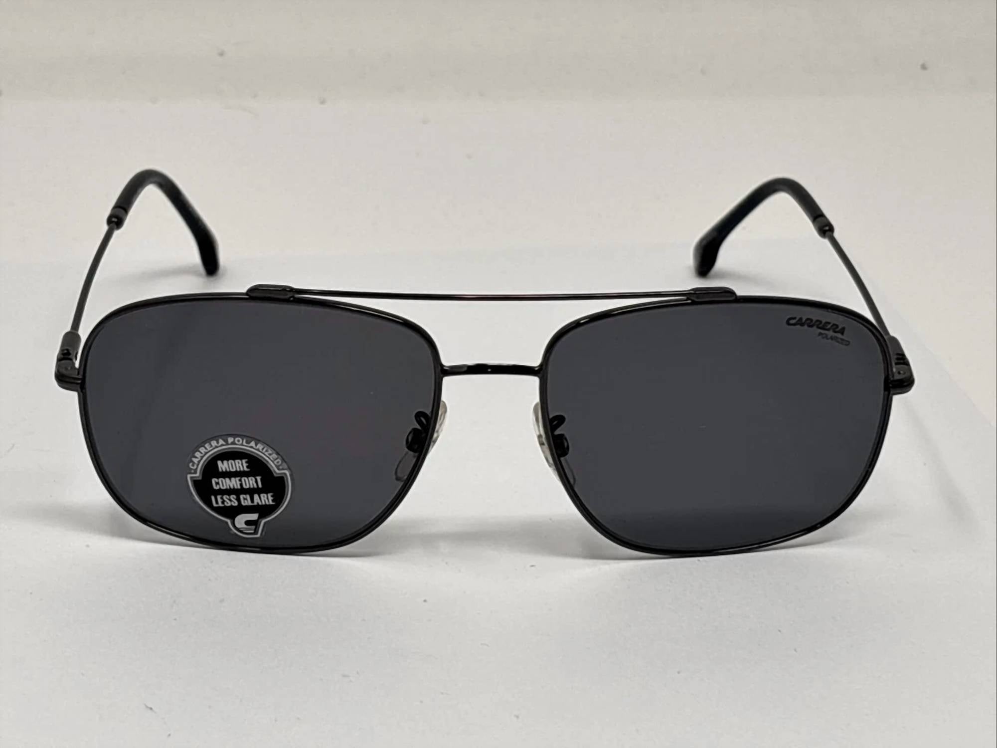 Introducing the Men's Polarized Aviator Sunglasses by Carrera, a sleek addition to any ensemble. These sunglasses combine a timeless aviator style with a modern black and gunmetal color scheme for an effortlessly cool look. Designed for clarity and comfort, they are perfect for any outdoor activity. Whether you're driving or relaxing by the beach, these shades have you covered.