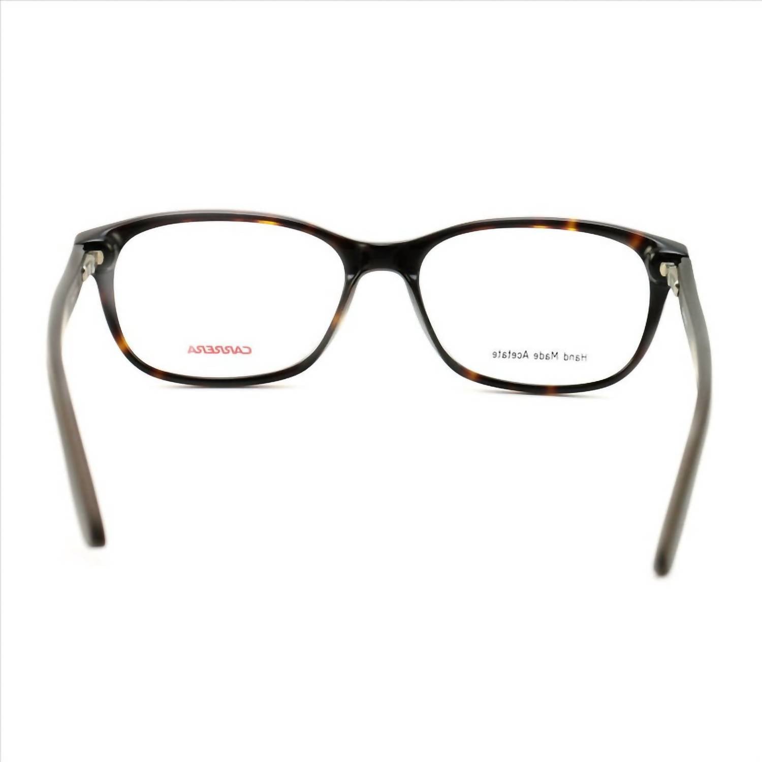 Blending fashion and practicality, these stylish shades are chic and mandatory. Stand out from the crowd and safeguard your vision with these stand-out sunglasses. Elevate your eyewear collection with the Unisex Ca9912 Eyeglasses by Carrera, featuring a full rim, rectangle design in a chic Havana frame color. Made from premium acetate, these glasses are both stylish and durable. With lens dimensions of 54mm, a 19mm bridge, and 140mm arms, they offer optimal comfort and fit. Equipped with plastic demo lenses, they are perfect for transitioning to your prescription needs.