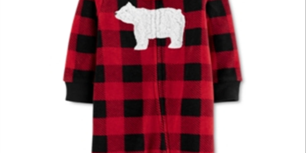 Baby Carter's Buffalo Check Zip-Up Fleece Sleep & Play Plaid Bear