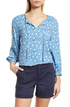 caslon(r) Floral Split Neck Shirt in Blue Vallarta Ikat Dot , Size X-Small
