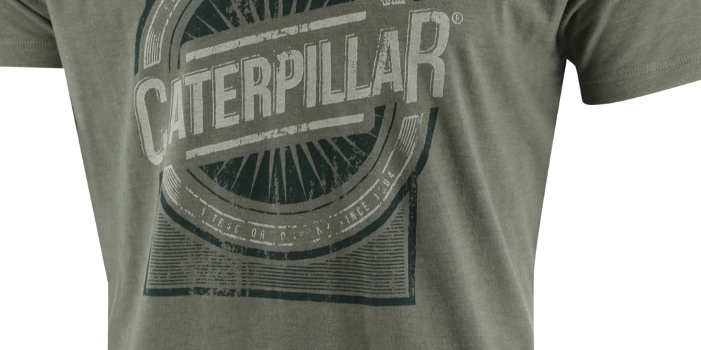 Give your casual look a retro feel with the distressed vintage-inspired logo graphic printed at the front of this Foundation T-shirt from Caterpillar.| Crewneck | Graphic-print logo at front; garment-washed styling| Cotton/polyester| Machine washable| Imported