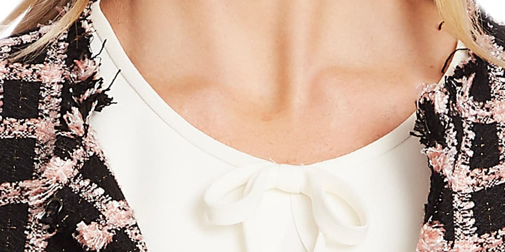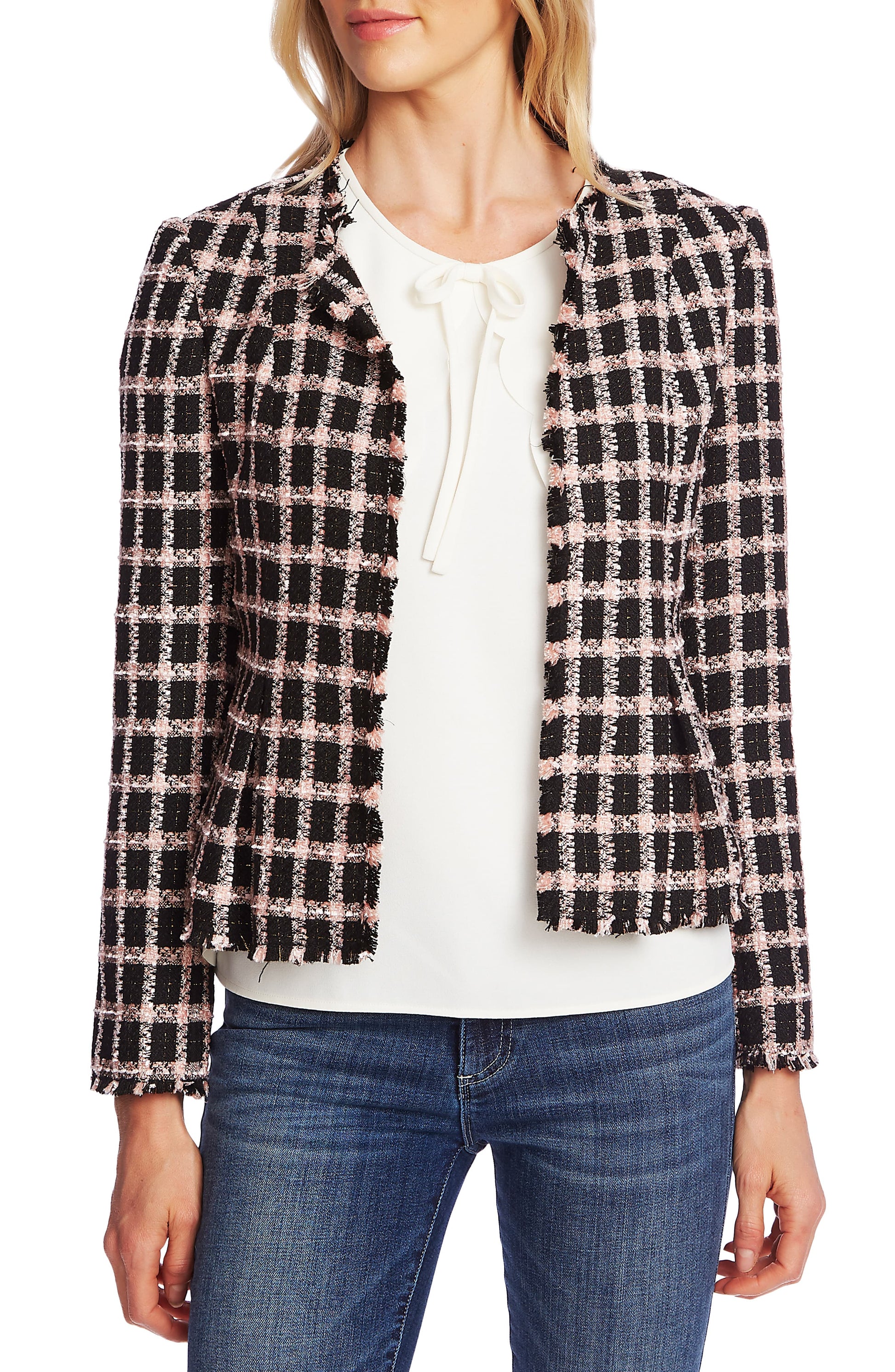 Cece Women's Frayed Plaid Wear to Work Jacket Gray Size 14