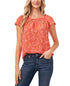 The ruffled neckline and floral print of this CeCe blouse brings feminine flair to your wardrobe and gives it a refresh with the colors.| Relaxed fit; hits at hip; approx. 19-1/2 long| Ruffled square neckline| Polyester/spandex| Machine washable| Imported