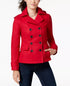 Short length; approx. length: 24-1/2" from center back to hem|Removable hood; notch collar; single-breasted button-closures|Strap and button details at back waist|Slit pockets at hips with faux flap details|Long sleeves with button details at cuffs|Lined|Shell: polyester/wool/; Lining: polyester
