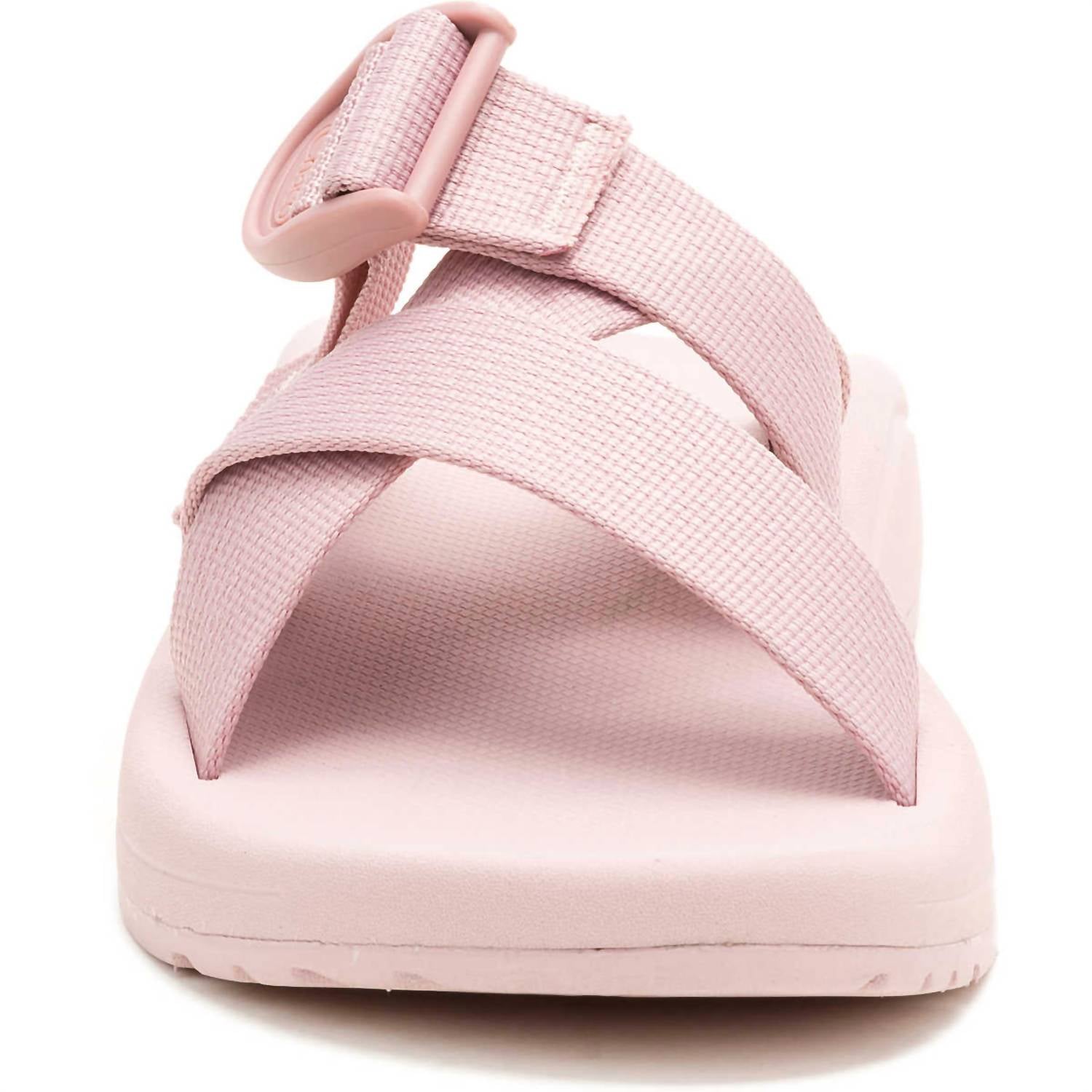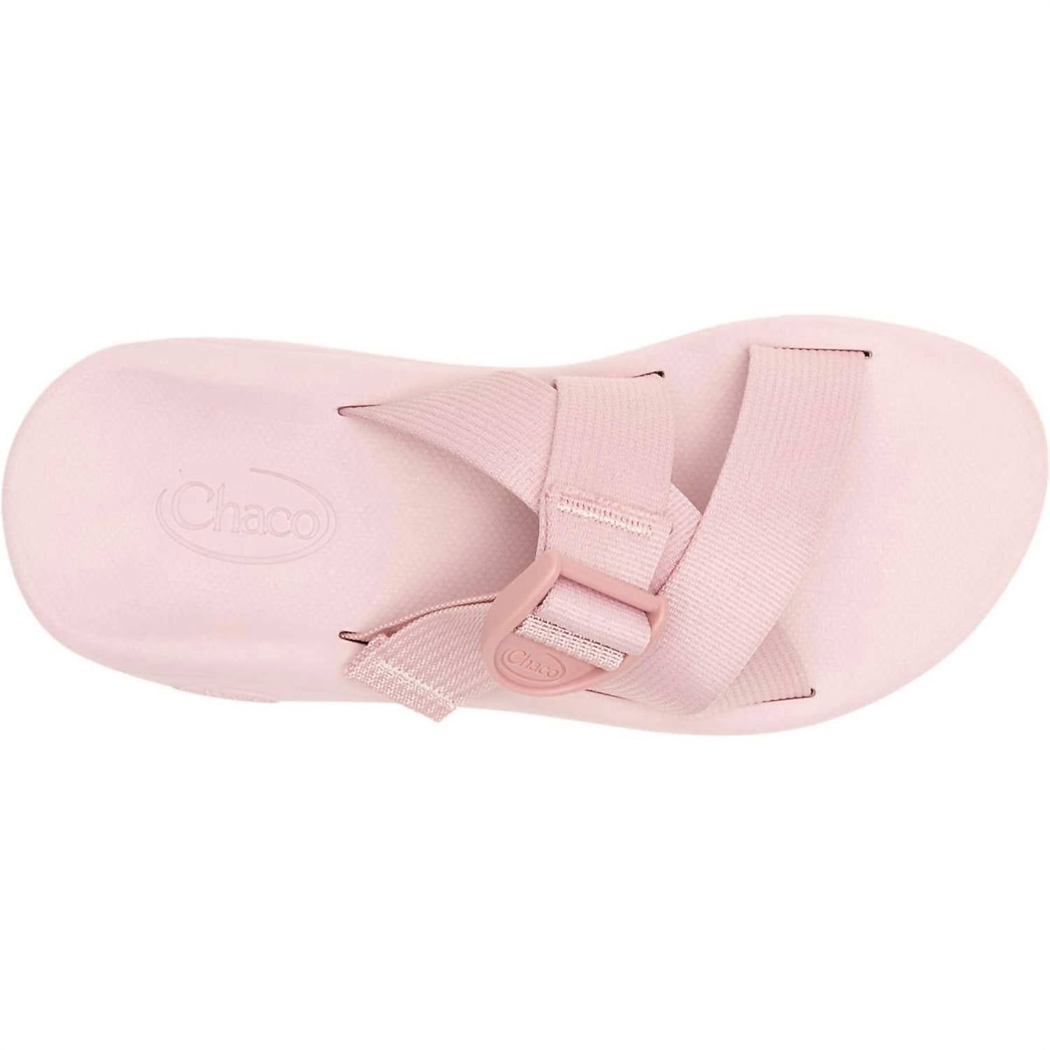 Indulge in exceptional comfort with the Women's Cushz Extra Cushioned Slide Sandal by Chaco in Rose Quartz. These sandals feature open toes and flat heels, perfect for vacation strolls or streetwear fashion during summer months, including the 4th of July festivities. Designed with ultra-light, cushioned footbeds and lightweight EVA outsoles, they provide all-day comfort. Enjoy a custom fit with fully adjustable recycled webbing straps, making them ideal for travel, post-hike recovery, or any summer adventure.