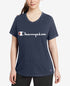 Update your T-shirt style with this plus size version from Champion designed with a colorful logo print across the front.| Relaxed fit; Approx. 28 long| Crewneck| Champion script at back neck tape; 'C' patch at left sleeve; logo print at front| Cotton/polyester| Machine washable| Imported