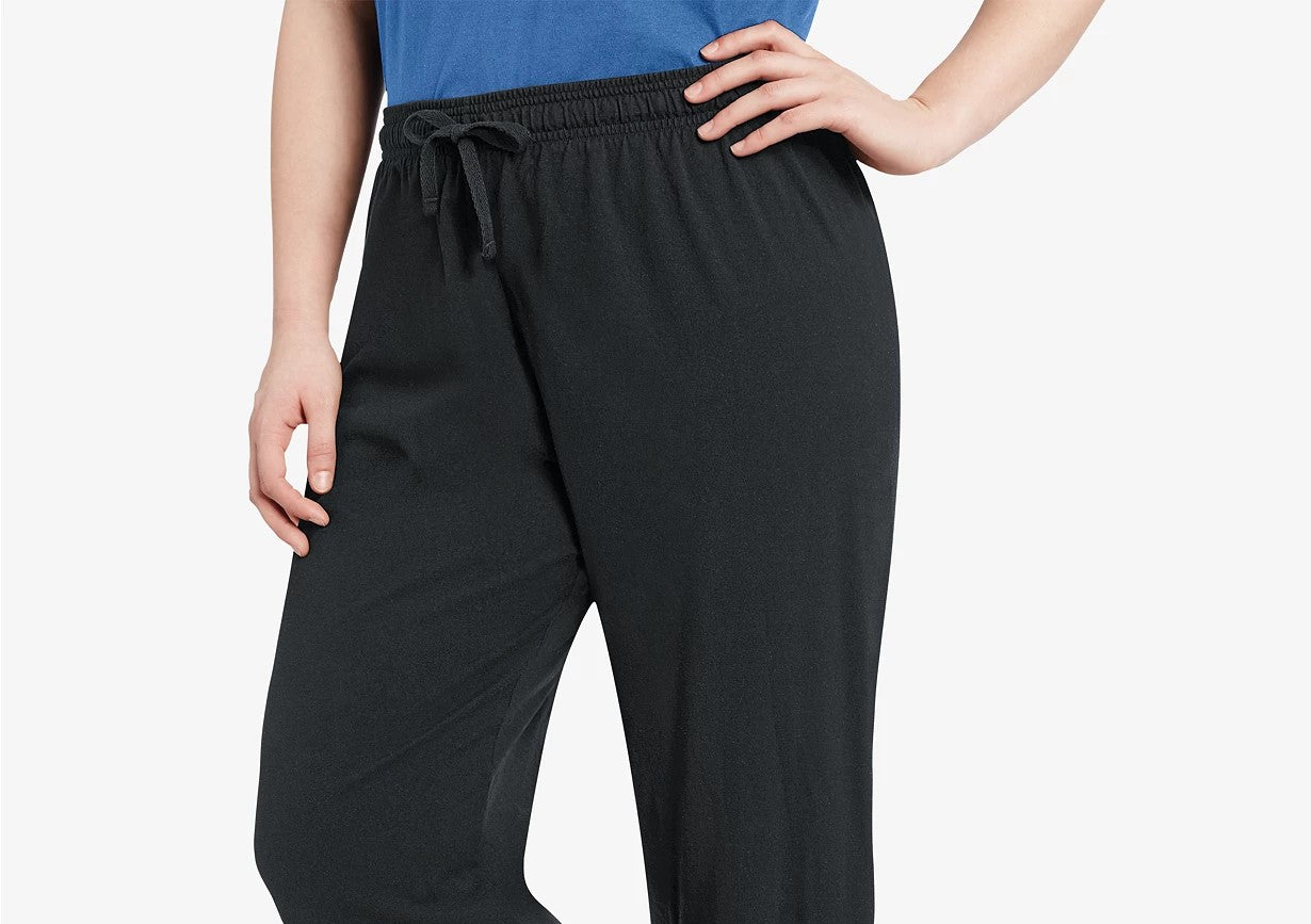 Relaxed fit through hips and thighs for ease of movement|Full length; approx. inseam 31-12"|Drawstring waistand|All cotton|Machine washable|Imported