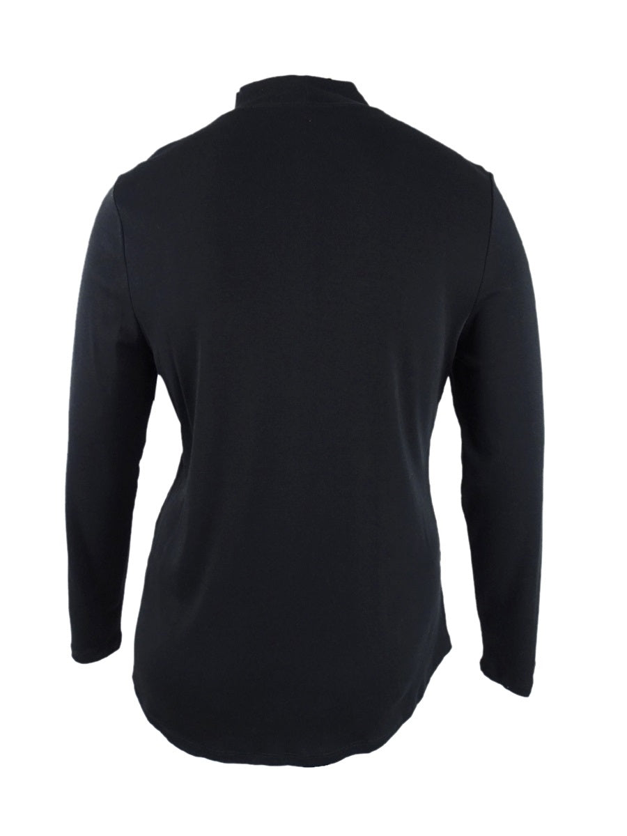 Charter Club Women's Cotton Mock-Neck Top Black Size X-Large