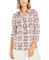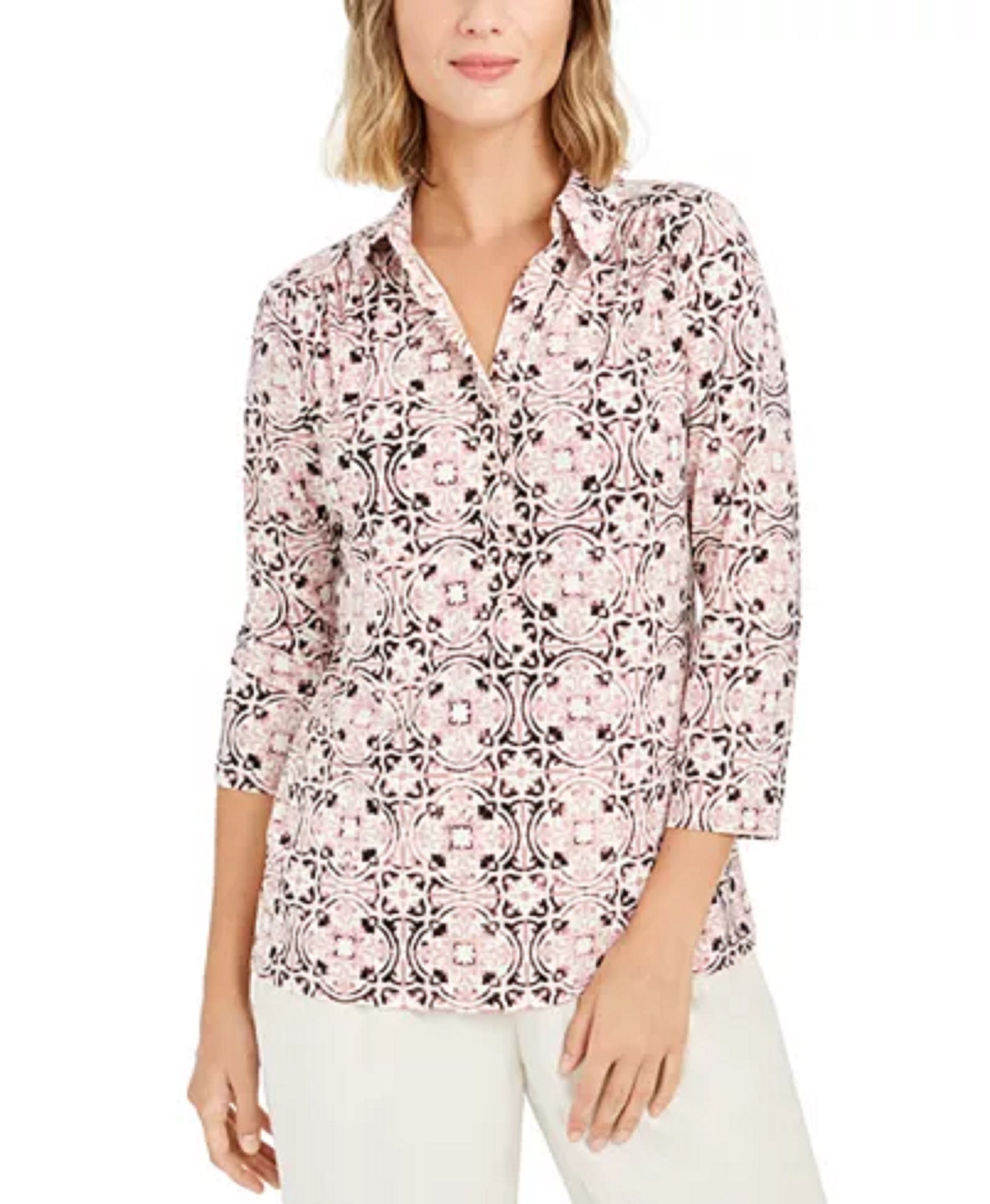 Charter Club Women's 3/4 Sleeve Printed Polo Top Pink Size Small