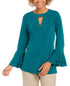Charter Club Women's Bell Sleeve Keyhole Top Green Size X-Small