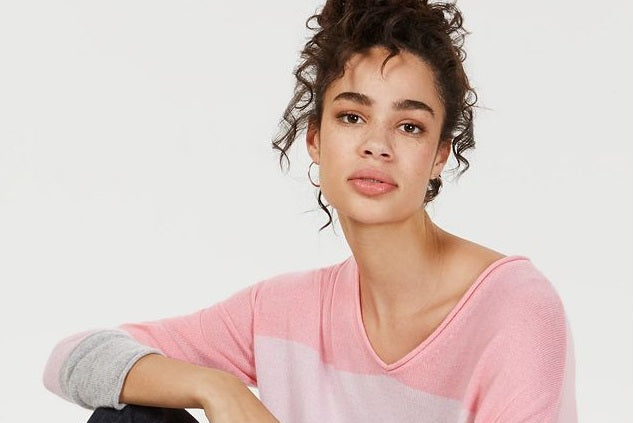Charter Club Women's Cashmere Striped Rolled Sweater Pink Size Small