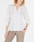 Charter Club Women's Cotton Embroidered Fringe Trim Top White Size Medium