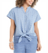 Charter Club Women's Cotton Embroidered Tie Front Shirt Blue Size Large