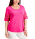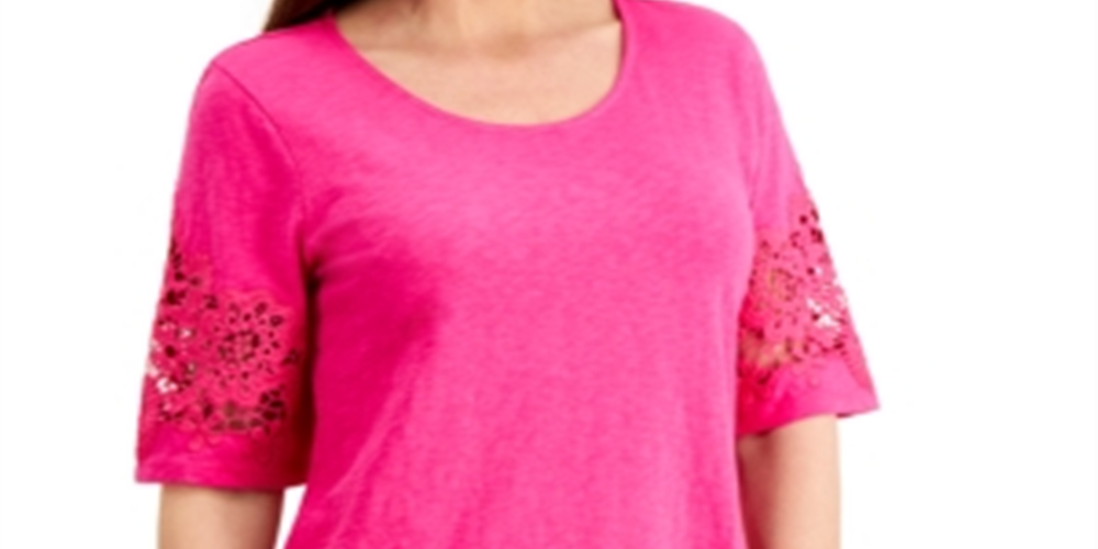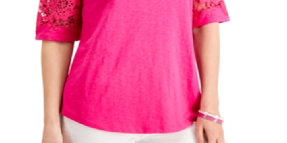Charter Club Women's Cotton Lace Sleeve Top Pink Size Petite Small