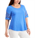 Charter Club Women's Cotton Lace TrimTop Blue Size Large