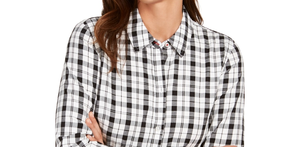 Charter Club Women's Cotton Plaid Shirt White Size X-Large