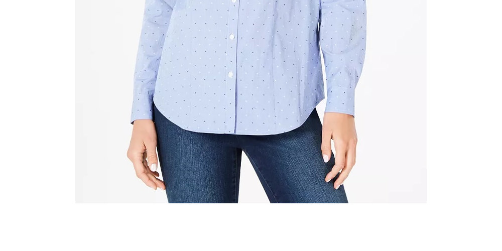 Ask a question about Charter Club Women's Cotton Printed Button Front Top Blue Size 18